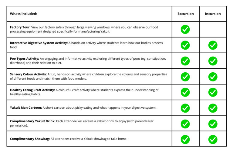 If you have any questions, don’t hesitate to contact our team on 1800 640 023 or email us at education@yakult.com.au.